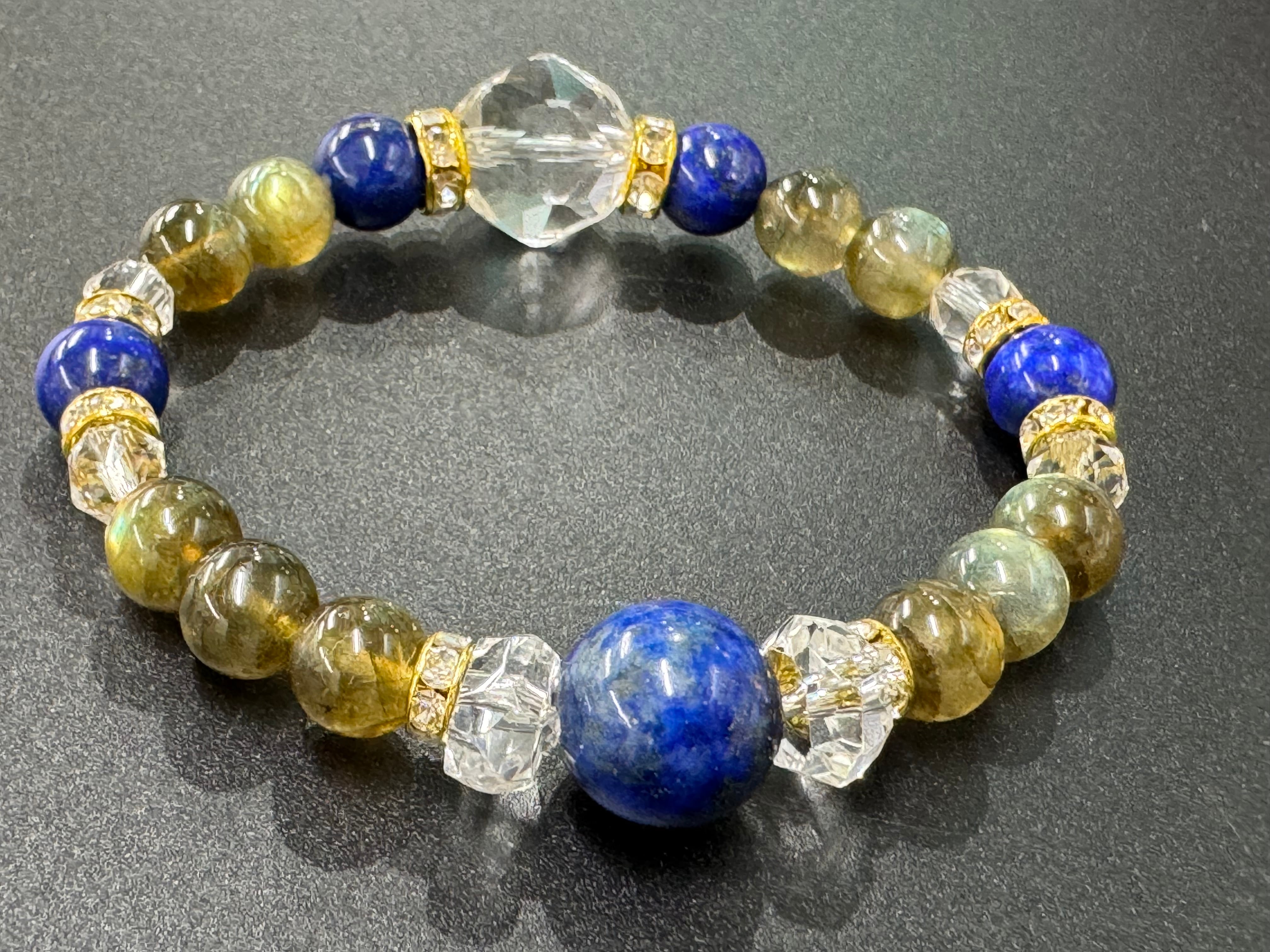 ラピスラズリとラブラドライトの組み合わせの落ち着いた色合いで、心の力を引き出してくれるブレスレットです✨